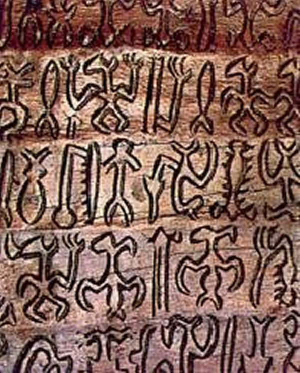 专家登上复活节岛时,曾在石人像附近发现大量刻满奇形文字的木板,还别说,有的特别象中国象形文字。它的笔触的粗糙、深浅,似乎都包含著某种意思,而且整个如同密码的书写排列方式,彷佛表现出某种波动般的节律感。