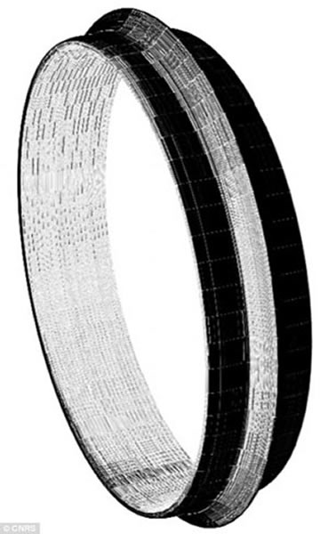 这个手镯是于1995年在土耳其Asikli Hoyuk挖掘发现的,目前通过最新计算机系统软件分析这个手镯上具有类似车体上的“橙皮皱”结构。