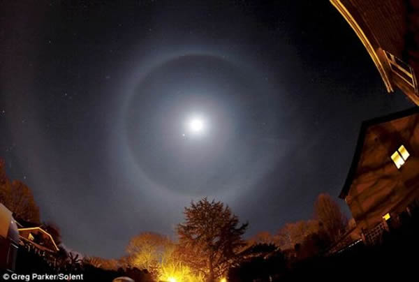 今年57岁的格雷格-帕克教授2日在新福里斯特的自家花园里,利用造价1万英镑(1.56万美元)的天文台捕捉到十分罕见的“月晕”图片。