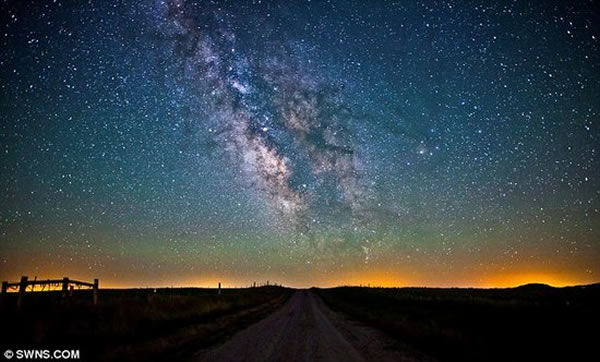 真实色彩:在美国怀俄明州奈厄布拉勒县上空清晰可见银河系的光带,在地球上无法真实观看到银河系雪白般的真实色彩。