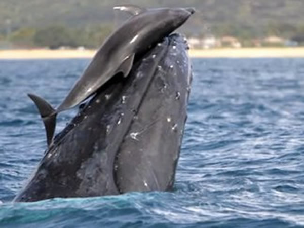在公开的水域中同鲸鱼或者海豚游水嬉戏是许多动物爱好者的梦想,这是我们同海洋哺乳动物相联系的一种方式,但是事实证明这两种哺乳动物事实上相互之间也享有某些愉快的时光。