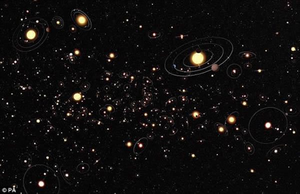 艺术概念图,展示了银河系内环绕恒星运转的行星,数量之多令人感到吃惊