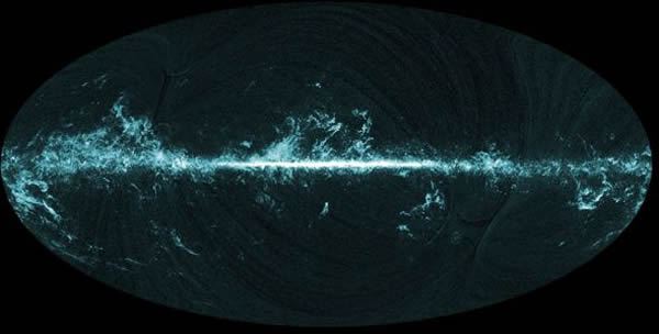 普朗克任务的目标是寻找和分析130亿年前大爆炸留下的残余辐射。通过过滤掉其他信号,普朗克望远镜能够帮助了解科学家银河系周围的星系。普朗克项目科学家、美国宇航局位于怕萨迪纳的喷气推进实验室的克里茨托夫-高斯基表示:“这些图像揭示了我们所在的银河系两个令人兴奋的特征。它们展示了银河系中央周围的一层‘薄雾’以及我们此前从未看到的低温气体。”