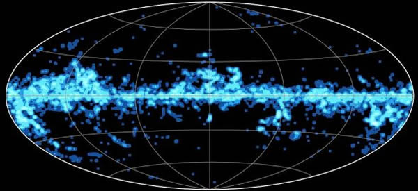 普朗克项目组绘制的另一幅全天图,揭示了宇宙中的一氧化碳,可用于探测分子云。巨大的分子云主要由氢构成,是一个温度极低的恒星形成区
