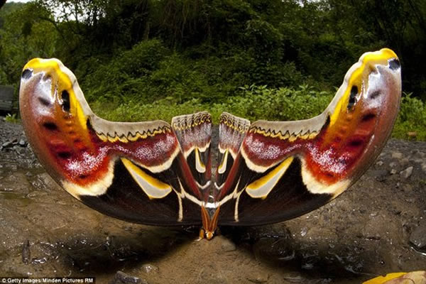 一位名叫桑德斯-卡达尔(Sandesh Kadur)的摄影师近日在喜马拉雅山东部(位于印度东北部)的一条公路上,拍摄到了全球最大的飞蛾即著名的乌柏大蚕蛾(或被称为阿拉特斯蛾)“安详地坐在”公路上的照片。