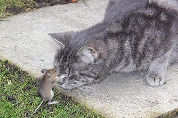 英国上演真实版“猫和老鼠” 来源: 神秘的地球 时间:2012年3月18日 10:32 老鼠趴在大灰猫鼻子上,一点也不惧怕 众人皆知,猫是老鼠的天敌。最近英国一位名叫埃文斯的女子抓拍到大胆老鼠“欺负”猫的精彩瞬间,老鼠摆出那一副敢在“太岁头上动土”的架势,十分滑稽可笑。 照片中,一只看似狼狈不堪的大灰猫匍匐在水泥地上,两眼紧闭,显露出一副“跪地求饶”的姿态。一只小老鼠伸展着前爪趴在这只大灰猫的鼻子上,并不惧怕,还露出一副“耀武扬威”的表情,似乎要狠狠地“收拾”这只猫一番。 据这只猫的主人埃文斯称,“我真不敢相信,我家那家伙竟然如此懦弱,竟被一只小老鼠‘欺负’”。 中国新闻网 上一篇 下一篇 TAG: 老鼠 猫 英国