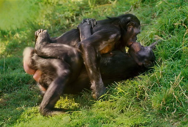 报道称,倭黑猩猩是高度混交的动物,它们比其它灵长类动物更“热衷”于交配,从异性恋到同性恋都有。它们频繁的交配被认为是巩固彼此的联系,消除了冲突,但是他们的生育率却很低,雌性倭黑猩猩每5到6年才生1只小倭黑猩猩。而人类不仅捕杀它们作为食物,而且偷去小倭黑猩猩卖做宠物。