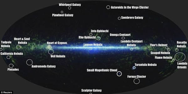 从这张图中能够看到5亿颗恒星,该图显示了从地球上可以看到的夜空的每一部分,用来拍摄该图的高科技红外仪器,能够捕捉到很多其他望远镜无法看到的充满尘埃的遥远天体。美国加利福尼亚大学洛杉矶分校“广域红外探测器”( WISE)的首席研究人员爱德华-赖特1998年开始与其他组员一起从事这项任务,他说:“今天‘广域红外探测器’把它14年间获得的丰硕成果提交给天文学界。”“广域红外探测器”这个耗资2亿英镑(3.14亿美元)的红外望远镜自从2009年发射升空,已经利用部署在太空里的一些迄今为止最尖端的相机扫描了整个宇宙。最终获得的这张图片是用该望远镜拍摄到的1.8万张图拼接而成的。