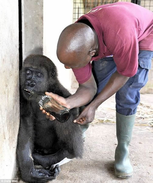 喝光:一位饲养员让舒菲喝可乐,试图让它活跃起来