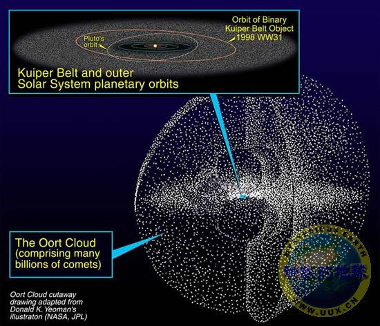 奥尔特云(Oort cloud)是太阳系边缘地区一个接近球型的地带