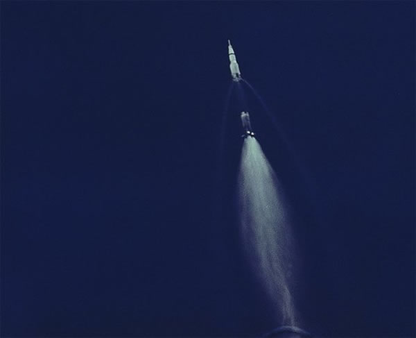 由美国空军拍摄的土星五号一级与二级分离时的情景