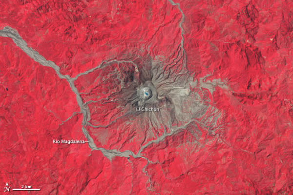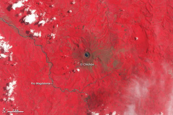 美国宇航局地球观测站今日公布了一组卫星照片,展示了墨西哥El Chichón火山几十年前和今天的景象。