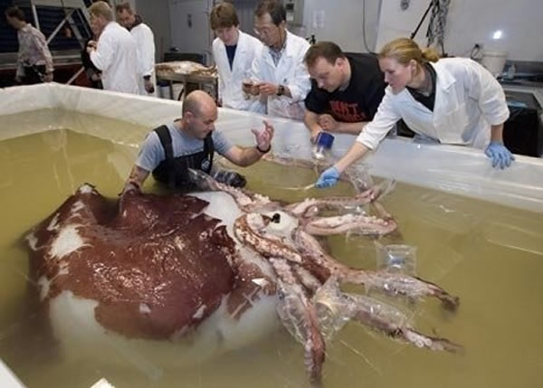 这只捕获于北冰洋的乌贼体重大约有1089磅,体长超过6米长。之前世界最大乌贼捕捉于新西兰而且体重只有992磅。