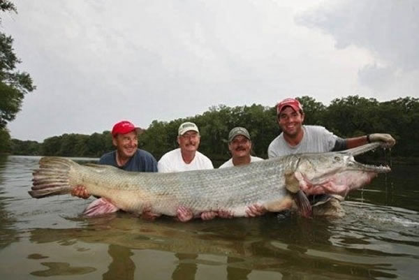 试着想一想钓上这只令人恐惧的大鱼。这只世界上最大的鳄雀鳝捕捉于德克萨斯州,体长8英尺3英寸体重230磅。