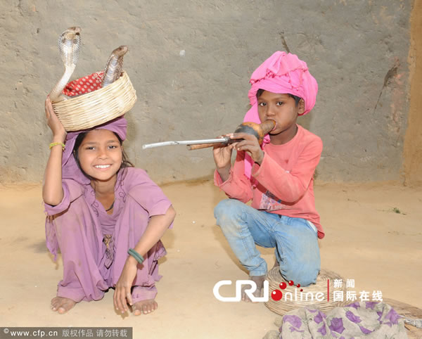 苏米特9岁的姐姐塔努和6岁哥哥卡兰也都是耍蛇能手