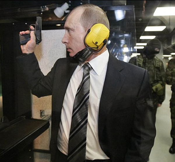 普京手拿一把普通手枪,但心里已经想着一种新式武器了