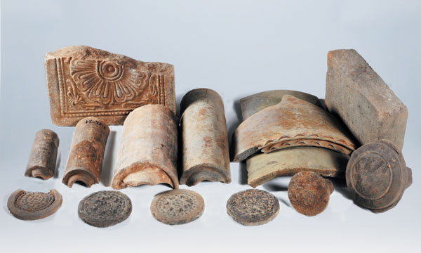 依据出土瓦当纹饰特点、筒瓦、板瓦的形制特点,初步认定此地为一处唐代砖瓦窑作坊遗址。由于出土遗物中夹杂大量碗、罐日常生活器皿以及陶俑残块等明器模型构件,可见这三组陶窑在当时并不只是仅仅提供建筑构件,还可能同时烧造生活器皿及丧葬明器。这种6座窑室共用一工作坑的平面呈“非”字形的陶窑群在西安地区并不多见,为我们研究唐代陶窑的结构、陶器手工业发展情况提供了宝贵的实物资料。另外此处窑群遗址位于唐长安城西城墙外侧,对研究唐长安城的建设和布局提供了大量线索。