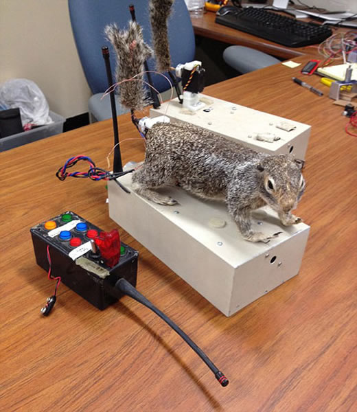 圣地亚哥州立大学(SDSU)研究人员卢伦-克拉克(Rulon Clark)将松鼠机器人用来研究“响尾蛇行为”,松鼠能使其尾巴变热来向蛇发送信号