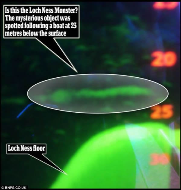 近日,一名船长用鱼群探测仪拍下一个声纳图像,它上面显示出一个“像蛇一样的神秘生物”。于是有人希望这个模糊图像或许能最终揭开尼斯湖水怪的神秘面纱。这张由尼斯湖船长马库斯-阿特金森记录下的声纳照片显示了湖底深处有一个未经确认的巨大生物。这个神秘生物是在75英尺(约合22.5米)深的黑暗湖底被记录下来的。