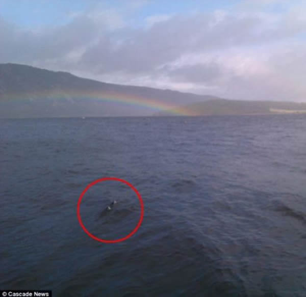 这个拍自2011年的照片显示一个长着两个驼峰的物体很快消失在尼斯湖水下。