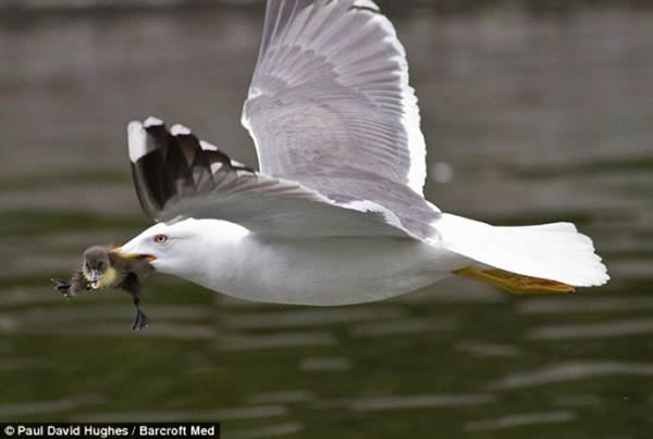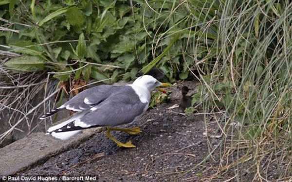 袭击成功:海鸥迅速带着可怜的受害者飞走,然后把它整个吞下肚