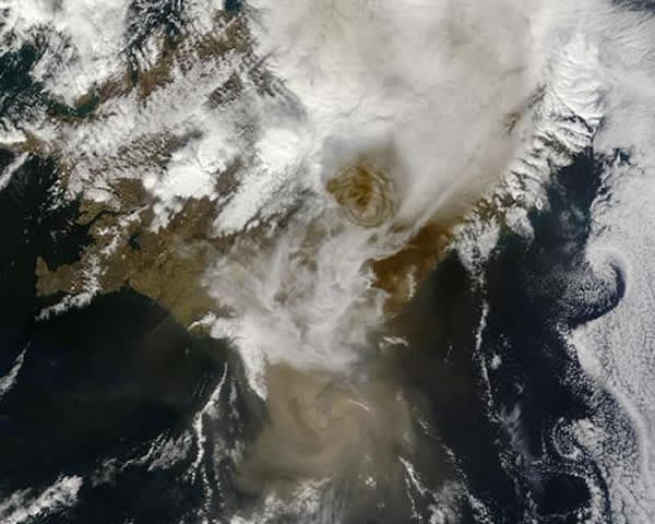 这张照片由国际空间站的飞行工程师杰夫·威廉姆斯(Jeff Williams)于2006年05月23日拍摄。NASA描述这张照片:“这张照片显示,火山灰从火山峰顶从西南偏西移动。雾霾(右上)是阿留申群岛周围的共同特征。”这些火山灰并没有持续多久,两个小时后就消失了。克利夫兰火山于2011年再次爆发。