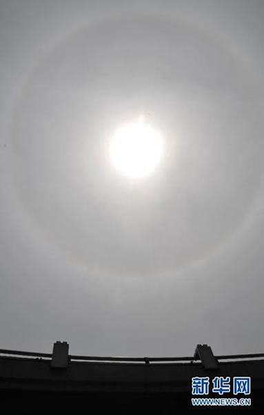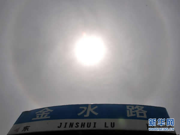 郑州城区上空出现日晕