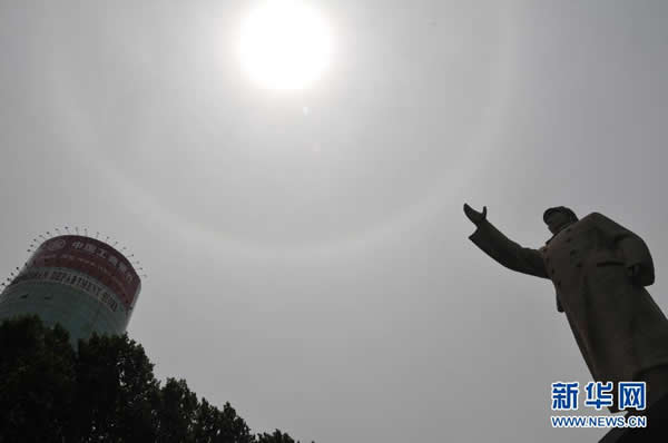 郑州金水路附近拍摄的日晕环。 5月14日中午11时左右,郑州城区上空出现日晕。
