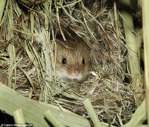 非常隐蔽的巢穴:巢鼠的巢穴非常小,但是很坚固,编织得非常巧妙