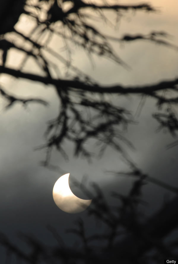在日全食观察范围外3000英里的范围内能观测到日偏食。这张照片拍摄于2009年7月22日印度阿萨姆邦的首都高哈蒂30公里外的Baihata村。