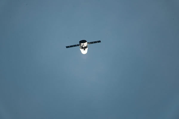 SpaceX公司的商业飞船-龙太空舱接近国际空间站进行了一系列的测试,为它最后的汇合与抓取做准备。