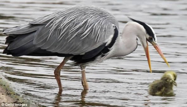 苍鹭捕食小鹅