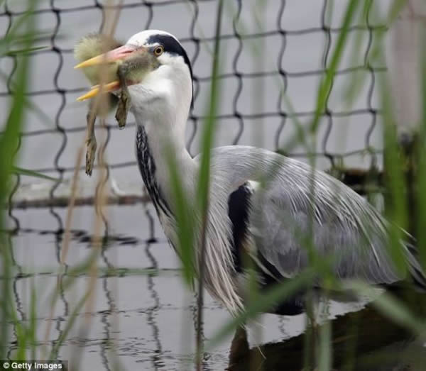苍鹭除了吃小鹅、小鸭子,还吃一些像田鼠和两栖动物一样的小型动物。