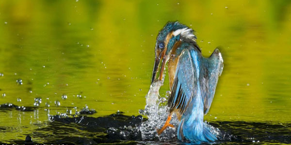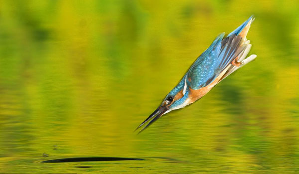翠鸟俯冲捕鱼