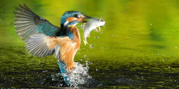 来自匈牙利的彼得斯伯格称,这组照片是在采用“筑巢摄影技术”拍摄的,使用诱饵吸引翠鸟潜入水中。