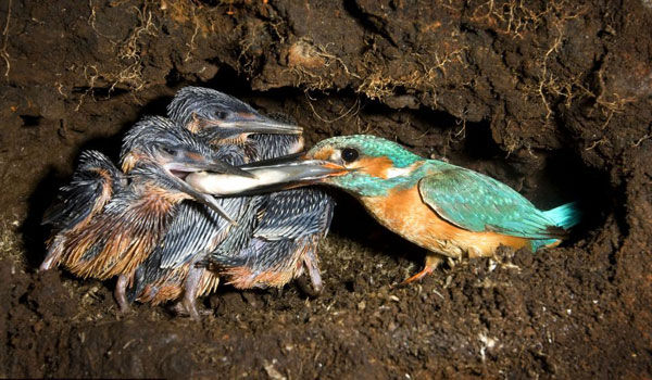 摄影师乔-彼得斯伯格还拍摄到这只翠鸟喂养幼鸟的镜头,在哺育幼鸟期间需要更多的猎物