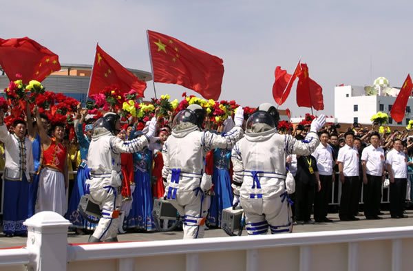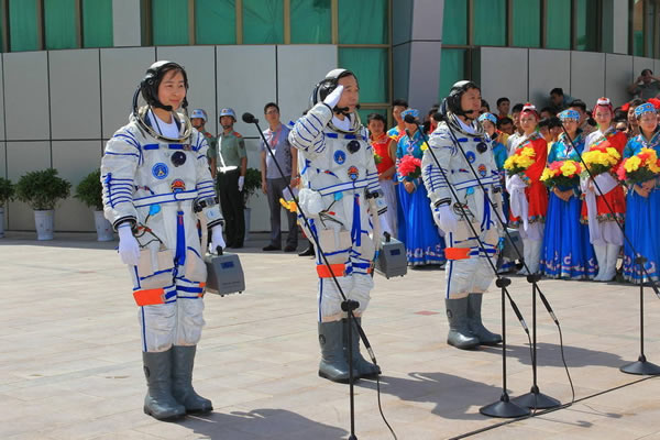 6月16日,神舟九号航天员出征仪式在酒泉卫星发射中心航天员公寓问天阁举行