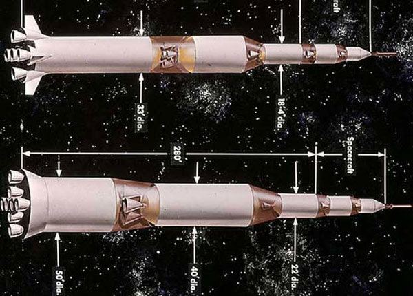 但这些火箭都无法与美国宇航局曾经计划打造的“新星”火箭的威力相比。“新星”火箭比“土星5”号火箭更高,也比它更宽,可产生1200万磅的推力。“新星”火箭由德国著名火箭工程师沃纳·冯·布劳恩(Wernher von Braun)设计,该火箭被设计成了可将人类直接快速地发送到月球。理论研究表明,和科幻小说描述的一样,将一架大型火箭直接发送到月球,利用反向火箭着陆,然后再返回地球,这是最好的方法。此方法称为直接上升,由于火箭的运动部件更少,所以任务失败的机率较低。只有庞大的火箭才有可能直接上升,从发射台直接飞向月球将需要消耗大量的燃料,就更不用说在月球着陆以及从月球起飞所需的燃料了。因此,许多专家考虑使用交会方式进行月球探索计划,而一个小型化、模块化的飞船将更轻、更省油。