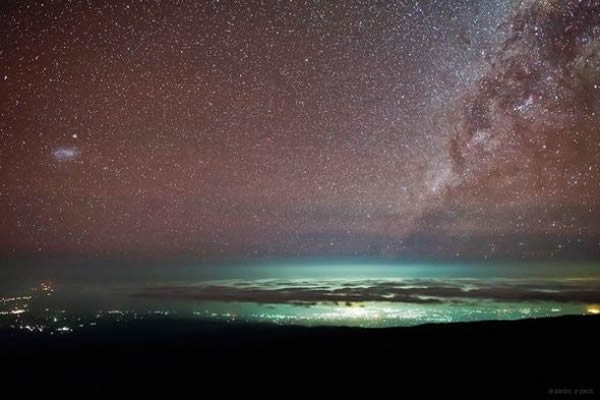 非洲乞力马扎罗山上空,银河星星点点,划过夜空。这张照片实际上是一段延时摄影作品的截图。这段视频是在乞力马扎罗山南坡下的一座小镇莫什(Moshi)附近拍摄的。图像左侧的白色云团状物体是小麦哲伦星系,这是一个矮星系,但其中同样包含有数以亿计的恒星。
