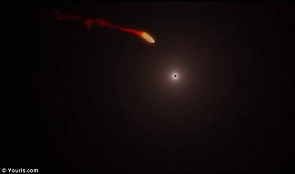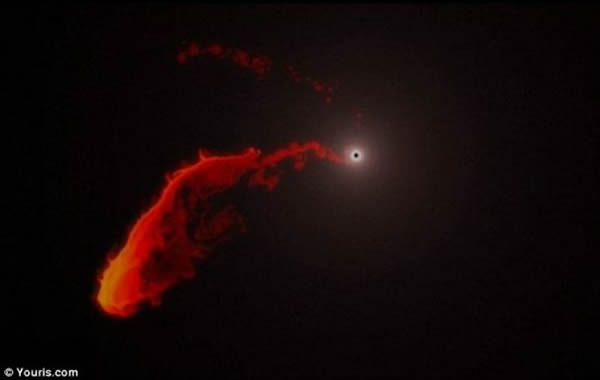 在人马座A黑洞巨大引力的拖拽下,气体云以每秒5000英里(约合每秒8046公里)的速度加速,将于2013年撞向这个黑洞
