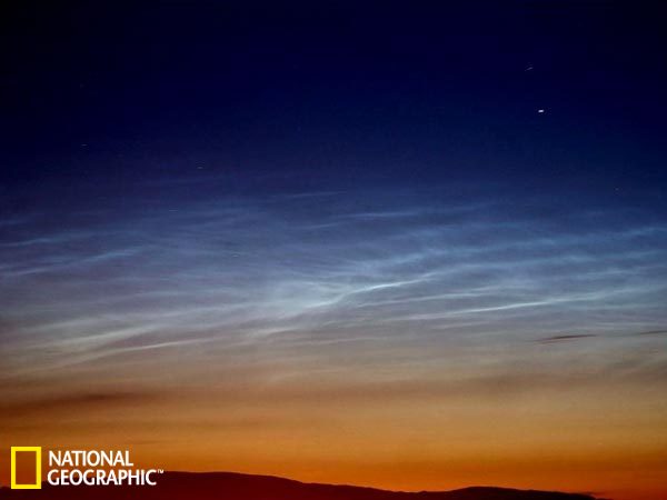 夜光云薄如蝉翼,因此在白天难以看到。它们的高度非常高,因此在太阳落山之后,其光线仍然能够照射到这些位于高空的云层上,从而形成夜光云的美景。夜光云本身是由冰晶组成的,这些罕见的云分布于大气中间层中,距离地面高度约50英里(约合80公里),这让它们成为世界上已知分布高度最高的云。