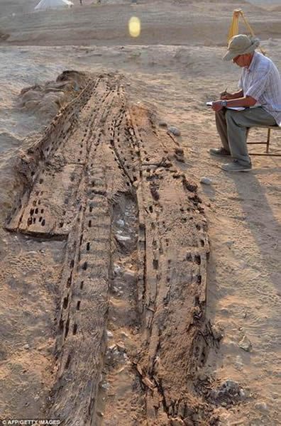 据英国每日邮报报道,目前,法国考古学家在埃及境内挖掘发现一个5千年前的木制船,这项重大考古发现挖掘地点位于开罗西部阿布拉瓦须陵墓区,这个木船被认为是法老死后转世的“太阳船”。