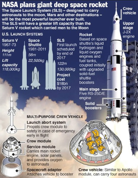 未来空间发射系统(SLS)运载火箭将是美国宇航局空间探索主力