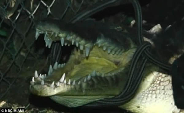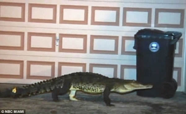 美国迈阿密州巨型鳄鱼半夜闯入一处民宅