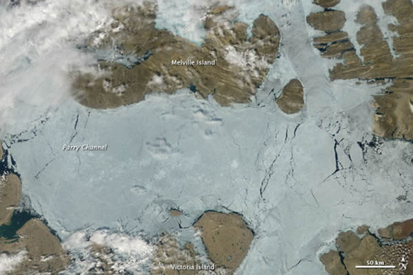 西北航道太平洋和大西洋之间最短的航道,始于格陵兰岛,经加拿大北部北极群岛,到阿拉斯加北岸为止。帕里海峡(Parry Channel)是西北航道中的一段。最近的卫星观测数据表明,2012年7月中旬至8月上旬,帕里海峡的海冰迅速撤退。