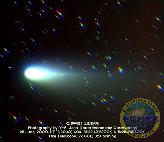 当美国、法国以及其他地区的天文学家第一次在内部详尽地观察彗星C/1999 S4(LINEAR)破碎的中心时,他们可能看到了太阳系形成的时间反演的一幕。6篇报告和1篇研究评述揭示出这颗去年夏季在位于地球最佳观测距离爆炸的彗星,具有一些意想不到的特性。这将加深科学家对彗星诞生、发展和消亡的了解。下面介绍一下其中一篇报告。