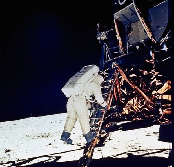 1969年7月16日,尼尔· A阿姆斯特朗(Neil A. Armstrong),指令舱飞行员迈克尔·科林斯(Michael Collins),以及登月舱驾驶员巴兹·奥尔德林(Buzz Aldrin)共同执行了阿波罗11号任务,由土星五号重型运载火箭发射升空,指挥官阿姆斯特朗成为第一个在月球表面行走的人。在美苏冷战对抗中,阿波罗登月计划成为了一种国家战略,时任美国总统的约翰 · F肯尼迪(John F. Kennedy)在1961年宣布支持阿波罗计划。