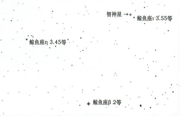 与地外行星类似,主带小行星也有冲日,当然这期间是观测它的较佳时机。9月28日,智神星运行到冲日位置,位于鲸鱼座天区,与黄道有10°的角距离。虽然与多数行星相比,智神星的亮度实在是很暗,但在小行星中也算是排名比较靠前的了。冲日期间智神星可达8.3等,在小行星中仅比谷神星和4号小行星灶神星暗。在茫茫星海中找到智神星也并不困难,28日前后它与目视星等为3.5等的鲸鱼座。角距离很近。