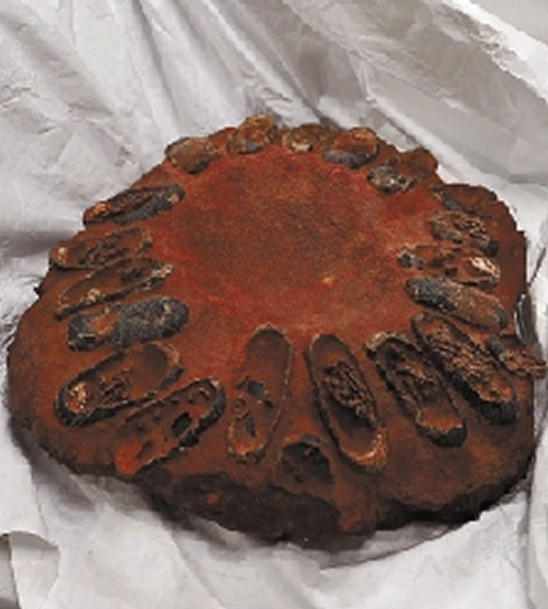 9月10日晚上10点,恐龙蛋化石刚刚从东家中国地质博物馆,运到浙江自然博物馆。记者有幸一睹蛋窝真容:蛋窝大致呈一个直径60厘米的圆形,周围均匀地分布了22个小恐龙蛋。