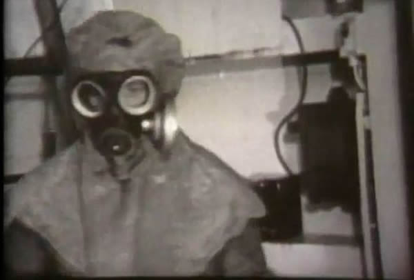 据英国每日邮报报道,这些猴子被塞在狭窄拥挤的牢笼里,只有脑袋可以勉强伸出来。在它们周围的斜坡码头上,头戴防毒面具,浑身上下用橡皮隔离服包裹地严严实实的人们正在安置着一排排满是实验用老鼠的箱子。当这些箱子被安放妥当之后,这些人便离开码头乘船离开了,之后的时间里,似乎什么事都没有发生。然后过了几分钟,一枚安置在海面上数英尺之外的小型炸弹突然爆炸了,在这些可怜的动物们面前展开一面满是黑死病病菌的水雾墙。这些恐怖的场景都来自一段近期才被首次公开的录像,这段录像所记录的正是60多年前英国政府秘密进行细菌武器实验的可怕场景。